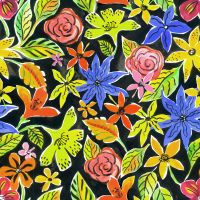 A bright painterly gouache floral rendered in a graphic style. Perfect for garments and swimwear.