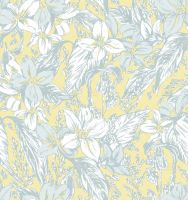 Field floral features field grasses and flowers drawn in loose style with hand drawn linework. Soft dusty blues and white pop on a chartreuse background. Suitable for a range of items.