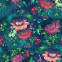 Folksy Noir is a deep luscious print featuring graduated greens, muted peach and reds.