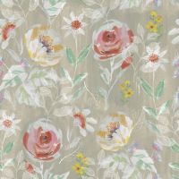 A hand painted vintage style floral on a painterly flax ground