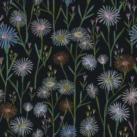Little paper daisies in a midnight garden, rendered in colour pencil